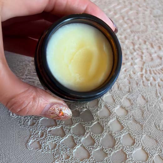 Scoop a small amount of balm with your fingers.