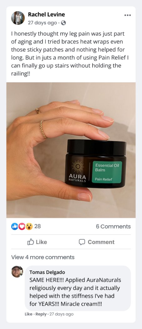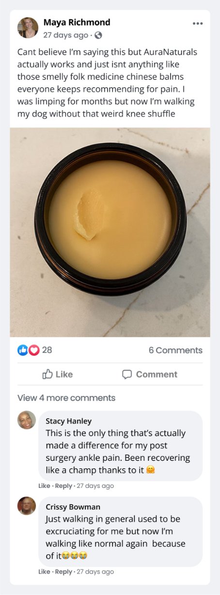 If you’re on the fence about AuraNaturals – check out these reviews from verified users. People from different walks of life and conditions finally started living a pain-free life thanks to this amazing balm: