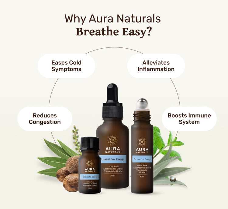 Breathe Easy combines nature’s most powerful respiratory aids into one refreshing, revitalizing blend. Australian tea tree oil takes the lead with its potent antimicrobial properties, helping to clear your airways and protect your immune system. Peppermint oil follows, bringing a cooling sensation that soothes congestion and opens nasal passages, making each breath feel effortless.