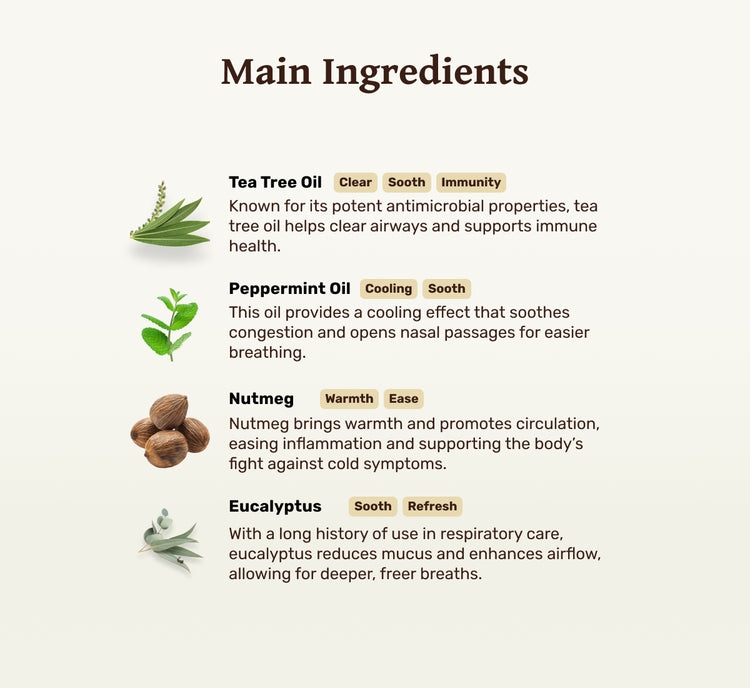 Finally, eucalyptus, known for its centuries-old use in respiratory health, rounds out the blend by reducing mucus and boosting airflow, helping you breathe deeply and freely.