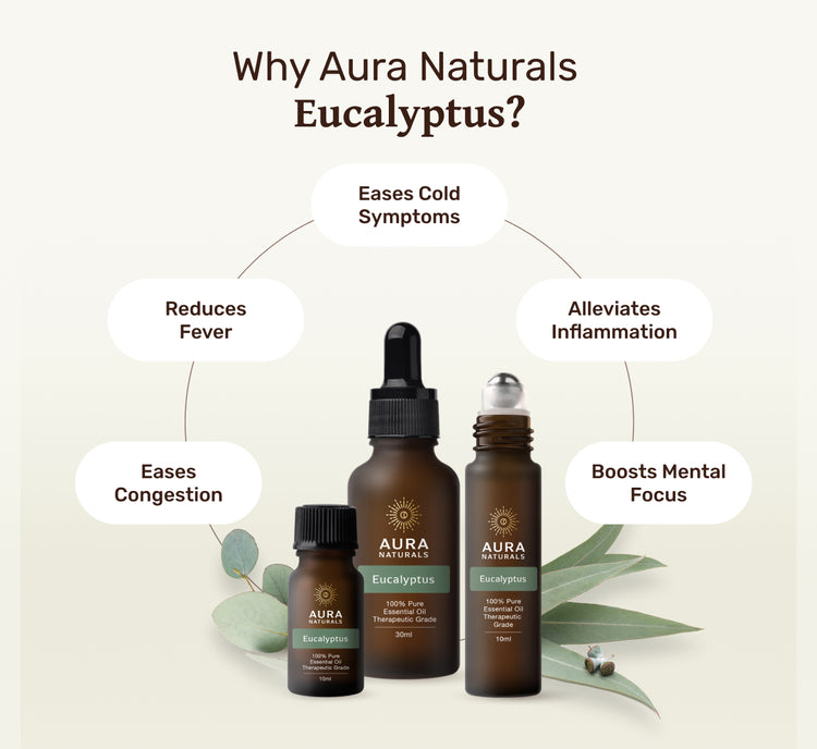 Eucalyptus oil is celebrated for its anti-inflammatory and anti-bacterial properties, helping reduce symptoms of colds, congestion, and muscle or joint pain.