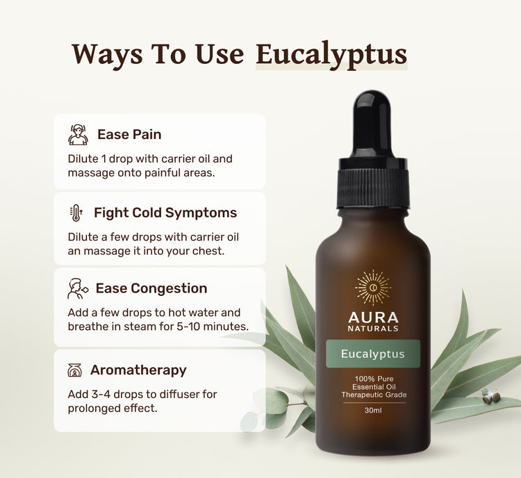 Eucalyptus essential oil does wonders for your overall well-being, relieving congestion, easing stress symptoms, and alleviating any pains you may have.