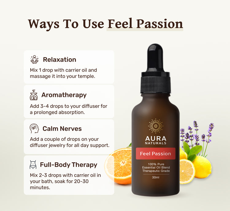 Feel Passion brings together a harmonious blend of calming and uplifting oils.